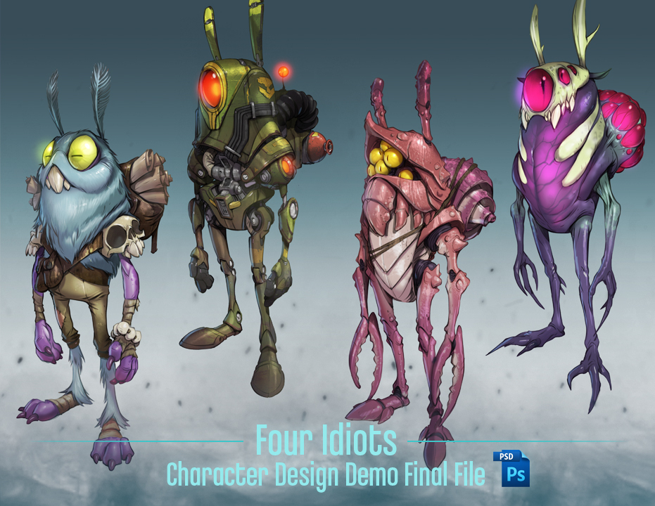 Take a look behind the curtain at the process for this demo with this fully layered PSD file of the Four Idiots.